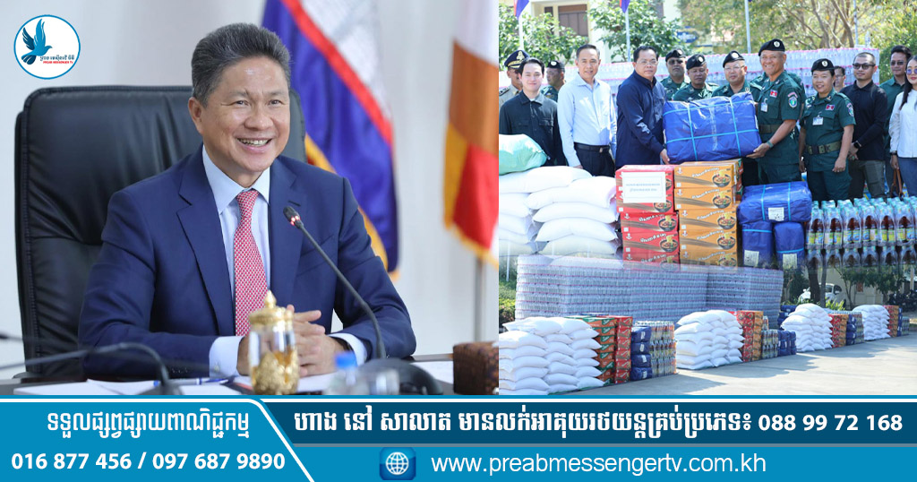 ឯកឧត្តម ស៊ុន ចាន់ថុល ឧបនាយករដ្ឋមន្ត្រី អនុប្រធានទី១ ក្រុមប្រឹក្សាអភិវឌ្ឍន៍កម្ពុជា បានឧបត្ថម្ភ សម្ភារៈបរិក្ខារគ្រឿងឧបភោគបរិភោគ ដល់កងកម្លាំងវរសេនាតូចការពារព្រំដែនគោកទាំង៤ ដែលកំពុងឈរជើងការពារបូរណភាពទឹកដីក្នុងភូមិសាស្ត្រខេត្តបន្ទាយមានជ័យ